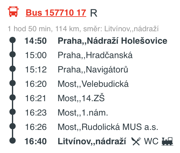 Pokud by se vám lepila smůla na paty a ujel vám i vlak z Ústí, další do Prahy jede ve 23:14 (s příjezdem do Prahy v 0:25). Nicméně ten má povinné rezervace místa, takže jízdu v něm budete muset případně řešit opět na nádraží na pokladně.